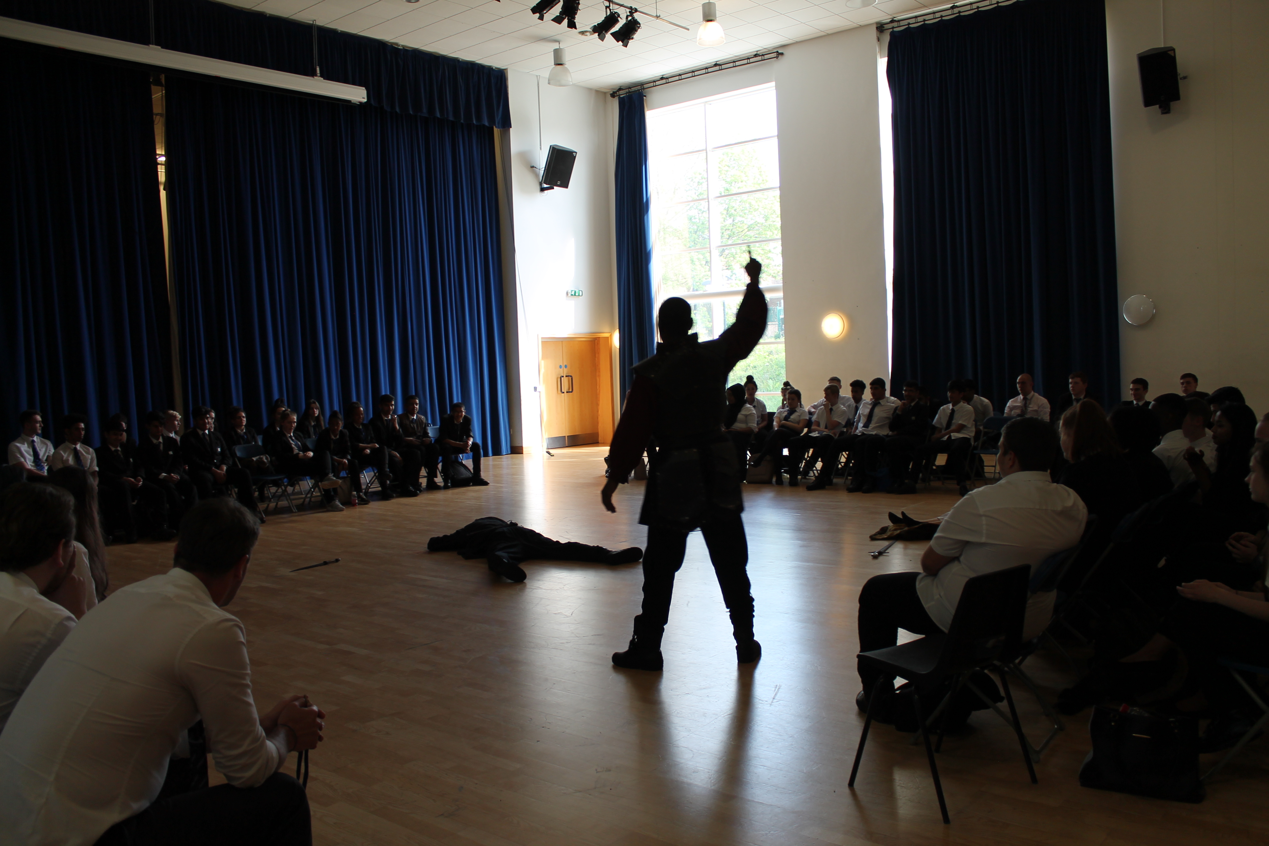 Sheffield Park Academy pupils were treated to their own ‘up close and personal’ performance of MacBeth, when the Young Shakespeare Company paid a visit recently.